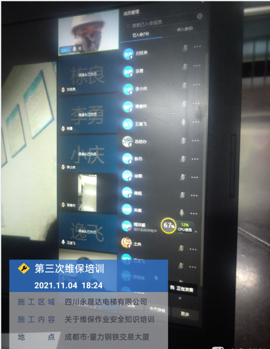 針對(duì)現(xiàn)成都及其他城市新型冠狀病毒肺炎的零星復(fù)燃,我公司在考慮后決定與維保人員舉行線上-釘釘視頻會(huì)議,此次會(huì)議維保師傅們?nèi)虆⑴c。